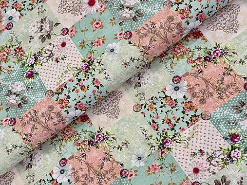 prekrásny Patchwork /ružičky / prekrásne farby odtiene zelenej mint