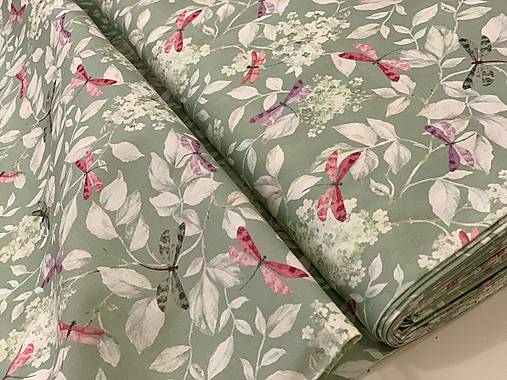 134g/m2 gramaz / krásne farebne vážky na kvetinách na mentolovom podklade / k tomu dostupná aj jednofarebná v tom istomodtieni