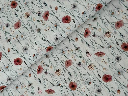3 D jemné kvetinky vlčie maky/ lúka kvetinky na bielej bavlne