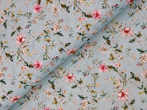 ❤️100% BAVLNA / KVETINKY NA BLEDOMODREJ ❤️