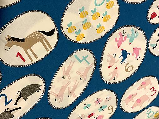 145g/m2 gramaz / krásna modra farba / zvieratká s číslami na pexeso, aplikácie , vankúše, deky