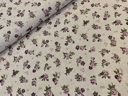 bavlna dekor vyššej gramaže fialove ruzičky na režimom