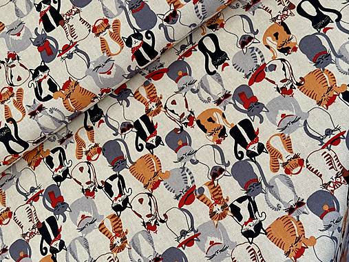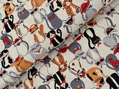 Bavlna dekor Taliansko / pestré farebne mačičky na režnom podklade vyššej gramaže 200g/m2