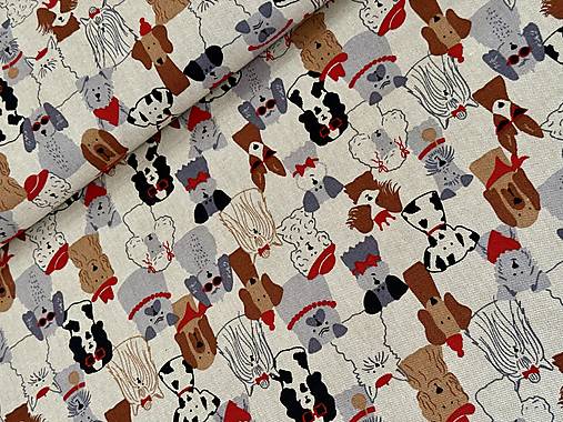Bavlna dekor Taliansko / pestré farebne psíky na režnom podklade vyššej gramaže 200g/m2